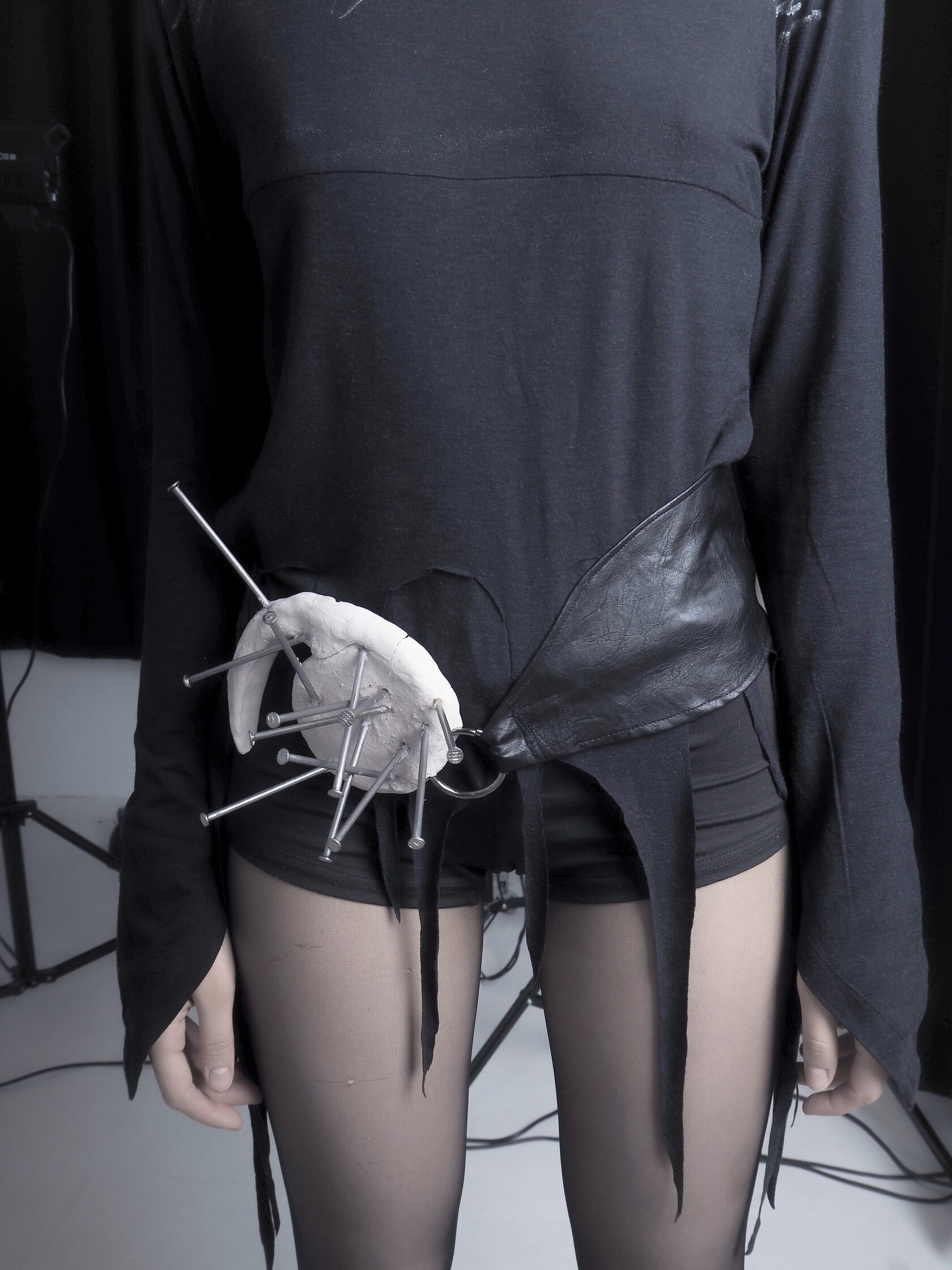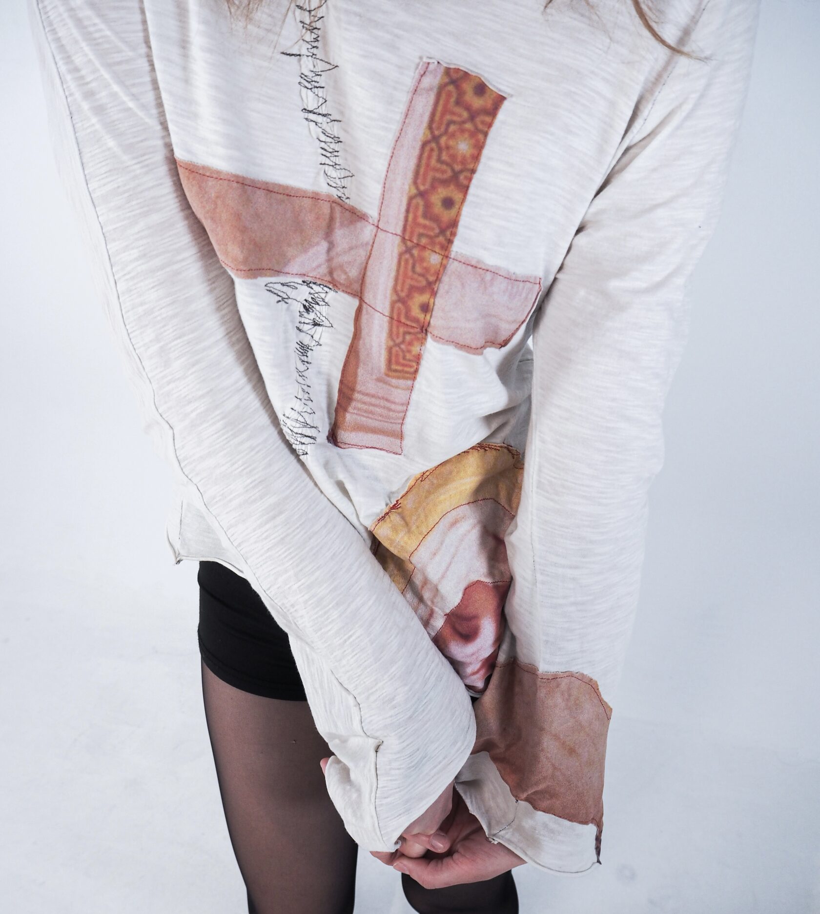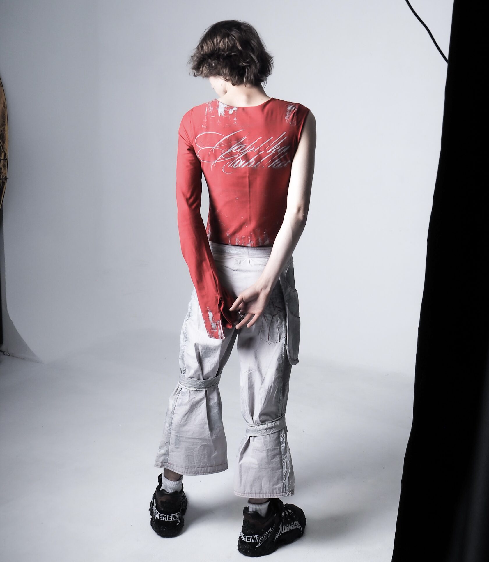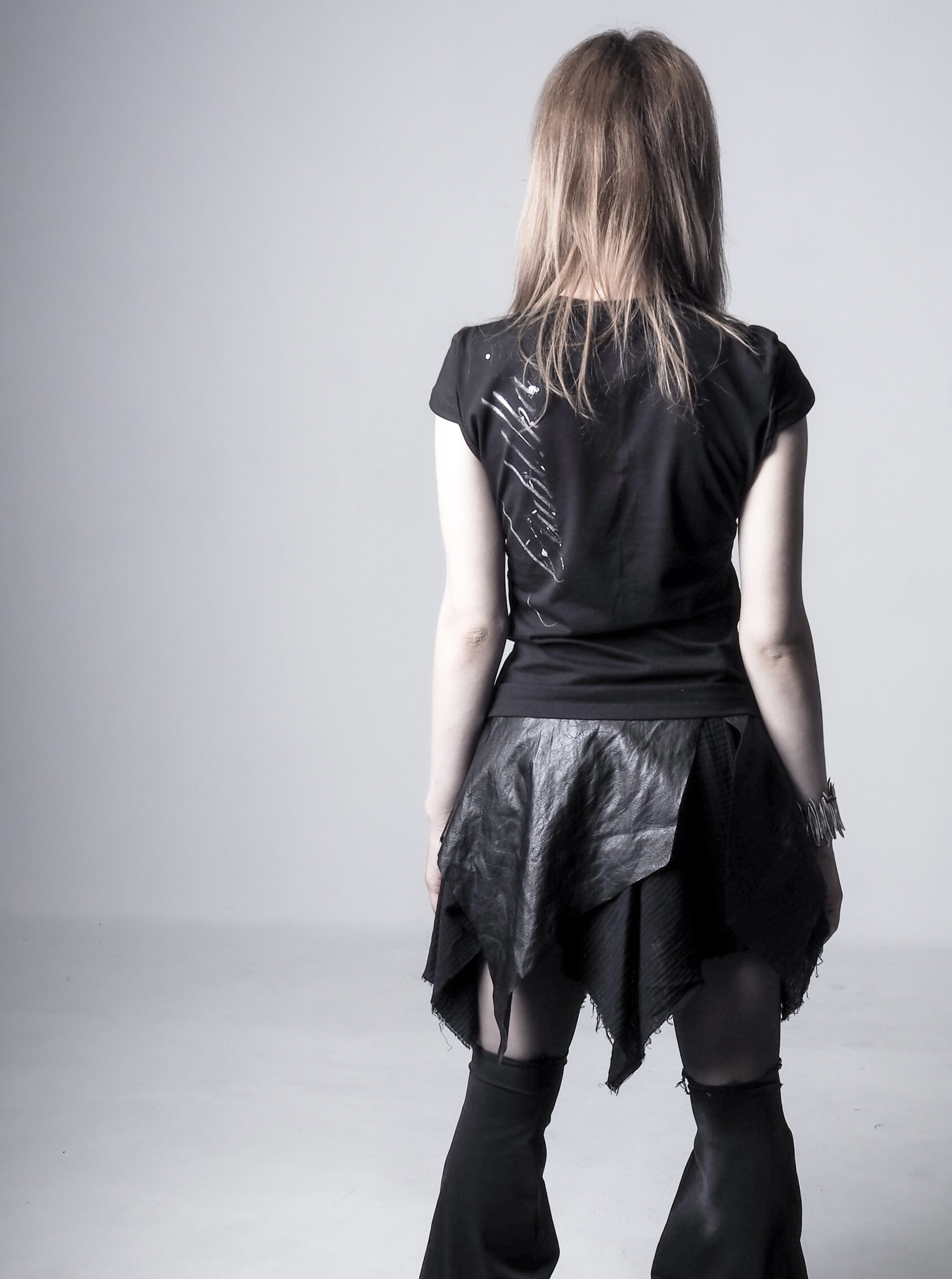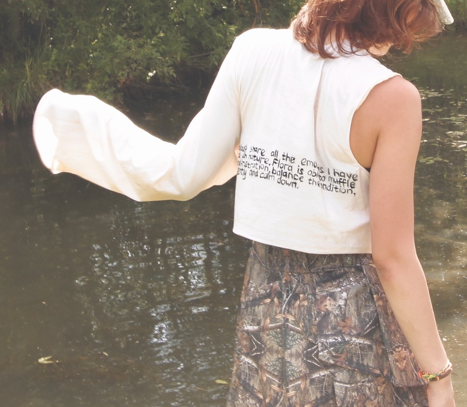 Коллекция одежды «детствовать» вдохновлена моими воспоминаниями о детстве, пропитана вымыслом и «изощренной» реальностью. Кукольные гетры, испачканный лонгслив с оборванным рукавом, новогоднее платье феи и даже принт дачной охотничьей куртки — все это нашло воплощение в моих изделиях