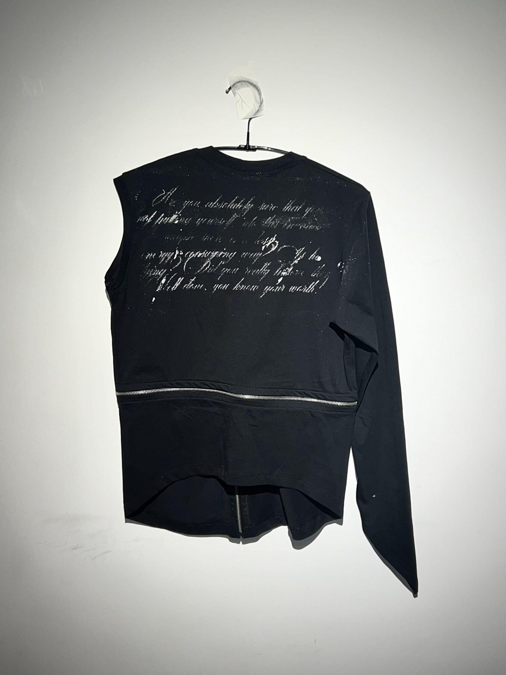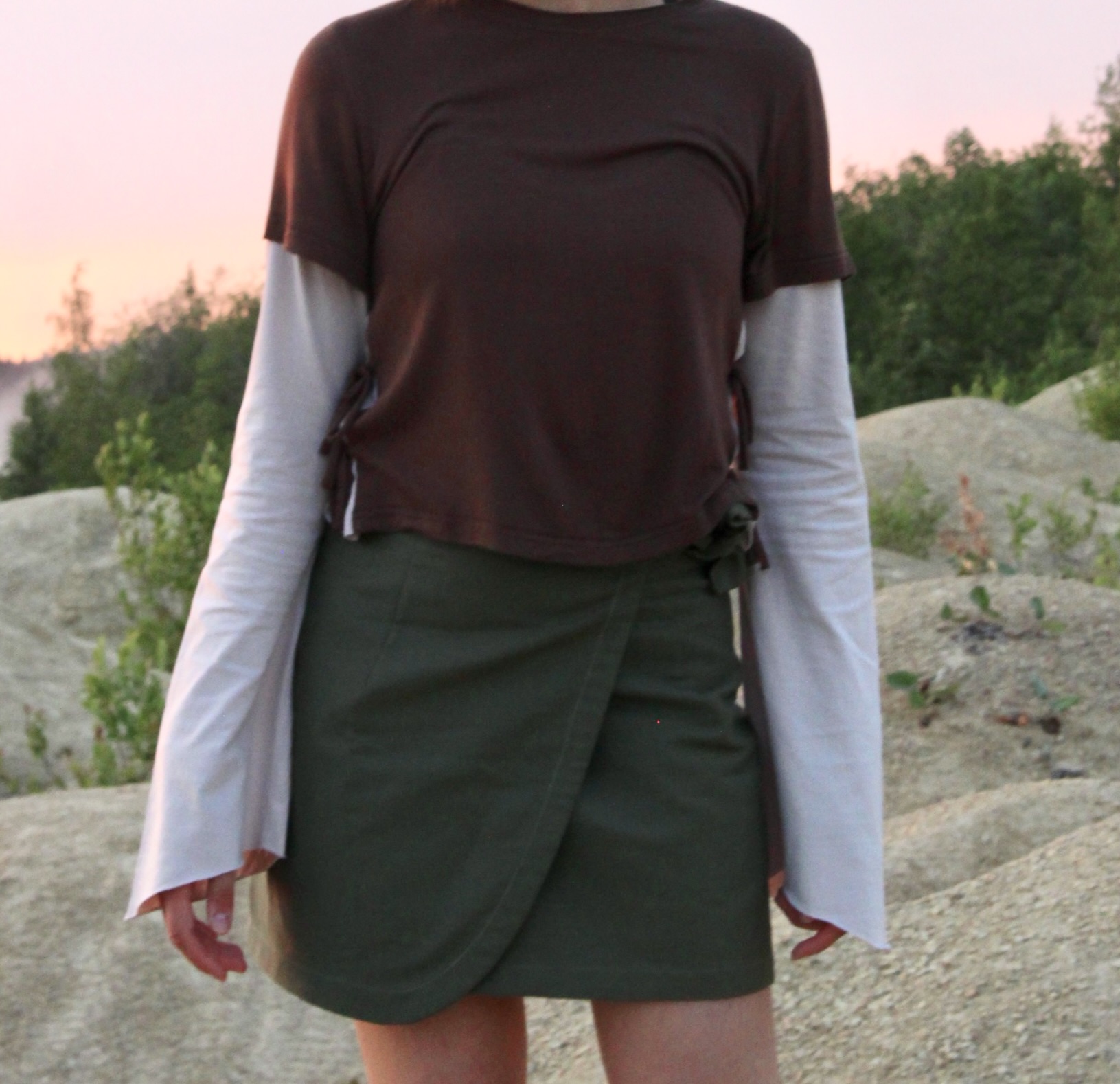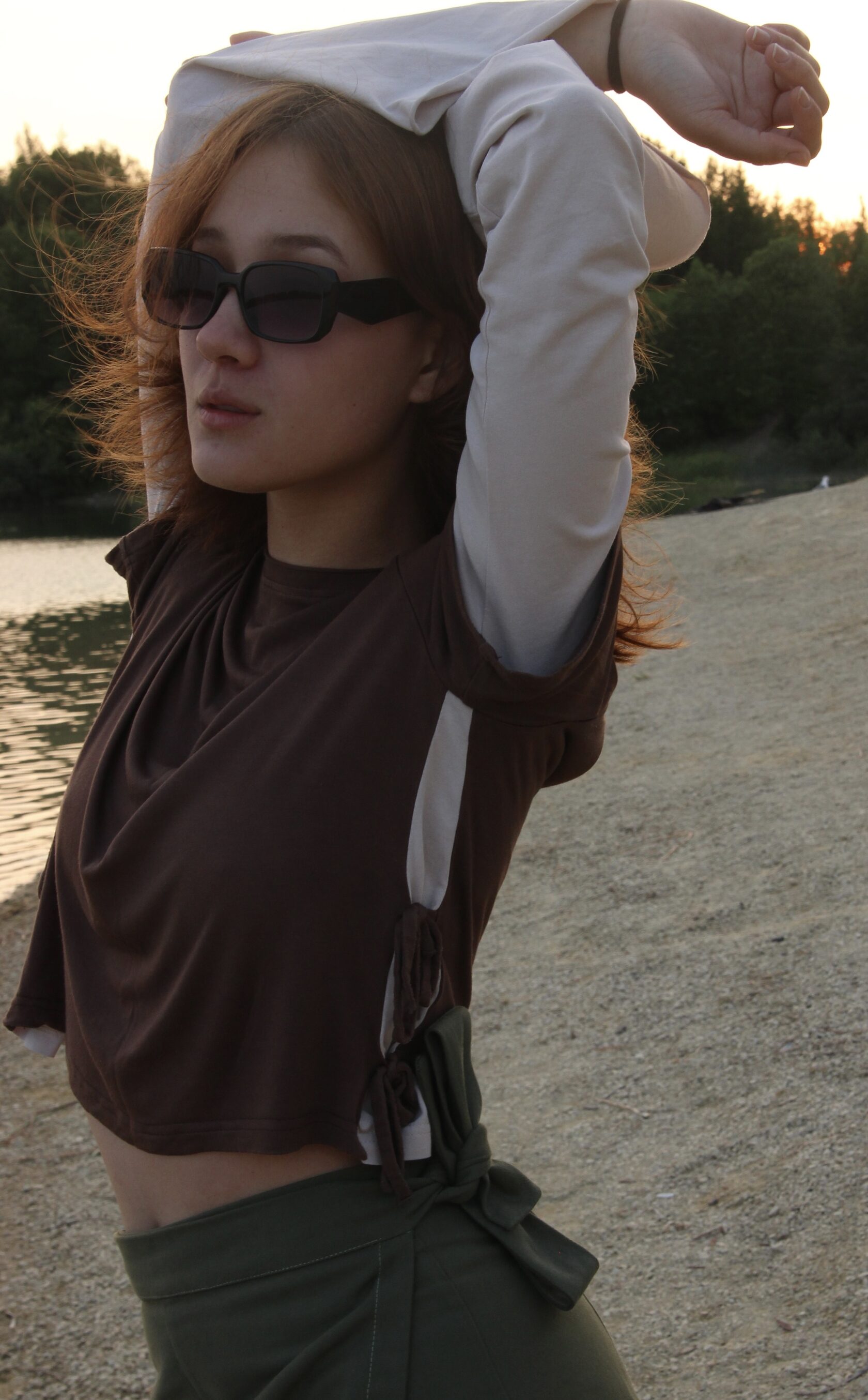 двухцветный лонг с комбинированным рукавом и завязками сбоку